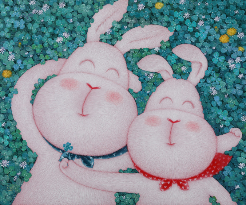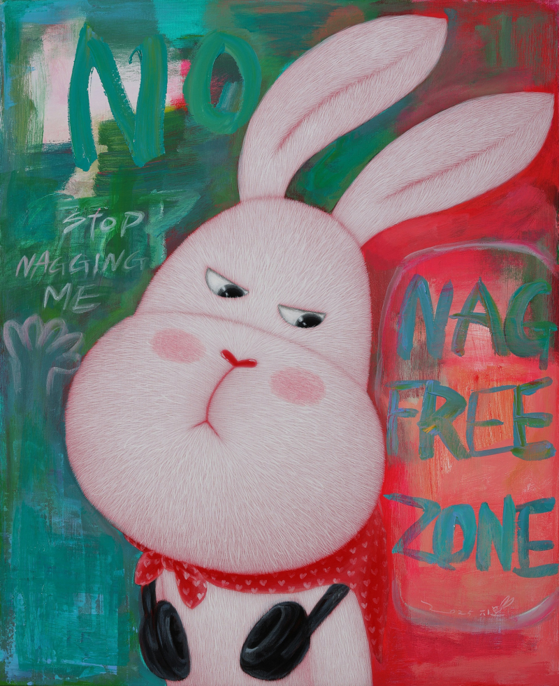 하지만 변화의 이유는 따뜻하고 분명했다. 1975년생 토끼띠인 그는, 딸 또한 토끼띠로 태어나며 인생의 전환점을 맞았다. 토끼 같은 딸을 바라보며 시작된 애정과 보호의 감정은 그림으로 옮겨졌고, 처음엔 딸을 위한 작은 그림에서 시작된 토끼는 어느새 작가의 정체성을 대변하는 주제가 되었다.