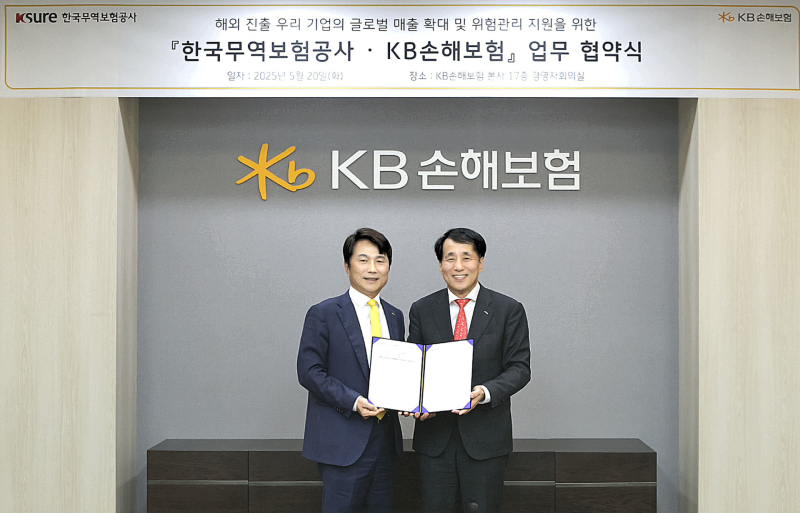 [서울경제TV=김수윤 인턴기자] 한국무역보험공사(무보)는 서울 강남구 KB손해보험 본사에서 KB손보와 '해외 진출 우리 기업의 글로벌 매출 확대 및 위험관리 지원을 위한 업무협약'을 체결했다고 20일 밝혔다.