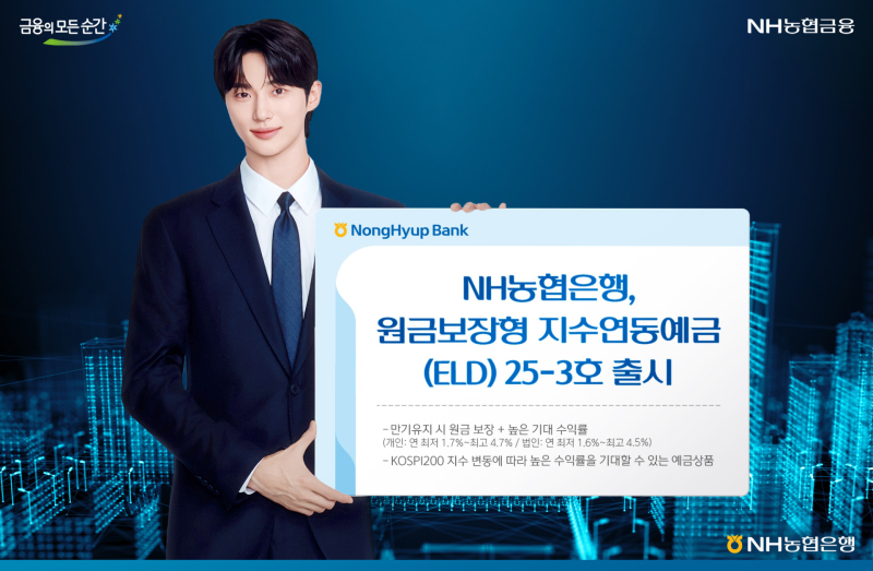 [서울경제TV=김수윤 인턴기자] NH농협은행은 만기유지 시 원금과 최소 약정 이자는 보장받으면서 높은 추가 수익률을 기대할 수 있는 '지수연동예금(ELD, Equity-Linked Deposit) 25-3호'를 출시한다고 22일 밝혔다.