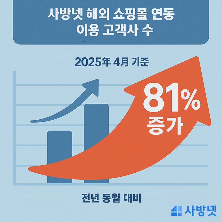 최근 글로벌 플랫폼과의 연동 확대에 힘입어, 2025년 4월 기준 사방넷의 해외 쇼핑몰 연동 고객사 수는 전년 동월 대비 81% 증가하며 폭발적인 성장세를 기록했다.
