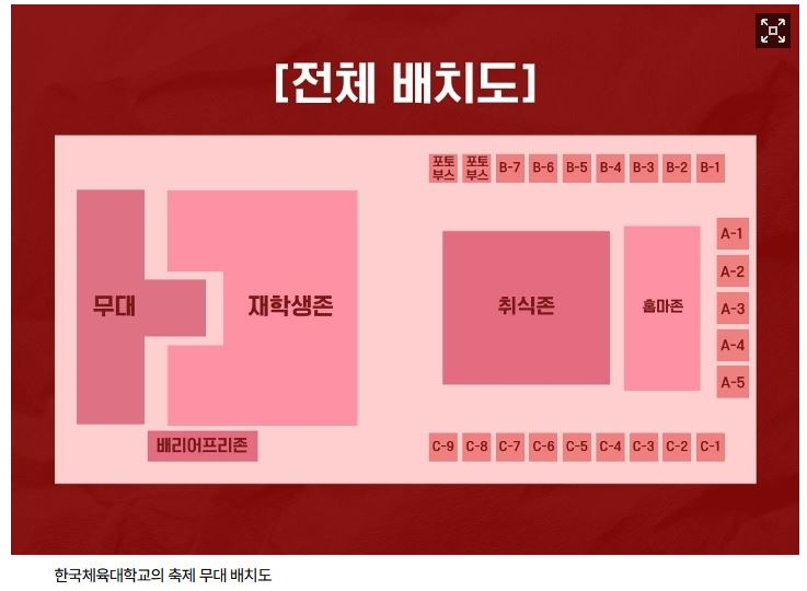 상황이 이렇자 한국체육대학교 측에선 배치도에 '홈마존(홈마 구역)을 만들었다. 홈마는 홈페이지 마스터의 줄임말로 단순한 팬을 넘어 자기가 좋아하는 연예인을 직접 촬영해 홈페이지나 SNS(소셜미디어)에 올리는 이들을 말한다. 그러나 홈마존의 배치가 무대의 정반대 편으로, 취식존보다도 멀리 위치해서 갈등을 빚기도 했다.