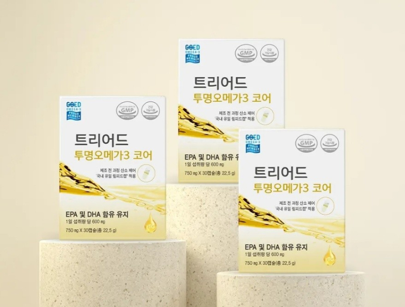 ‘트리어드 투명 오메가3 코어’는 제조 전 과정에서의 산소 제어를 강화한 제품으로, 불포화지방산이라는 오메가3의 원료 특성상 산패에 취약한 점을 해소했다. 이른바 ‘기름이 쩌는’ 현상인 산패는 유기물이 산소와 접촉하면 인체에 유해한 부산물을 생성해 암유발인자를 형성할 수 있어 오메가3 선택 시 가장 눈여겨봐야 할 부분이다.