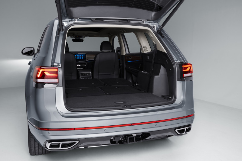 신형 아틀라스는 전장 5095mm, 전폭 1990mm, 전고 1780mm의 동급 최대 차체 크기를 갖췄으며, MQB 플랫폼 기반 폭스바겐 최대형 SUV다. 시트 구성은 2+3+2 구조의 7인승과 2+2+2 구조의 6인승으로 운영된다. R-Line 디자인 패키지를 기본 탑재하고 21인치 알로이 휠, 블랙 라디에이터 그릴, LED 헤드램프 및 램프 일체형 일루미네이티드 로고 등을 장착했다.