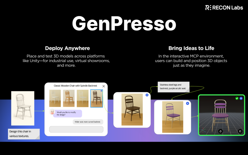 리콘랩스는 이번 AWE USA 2025을 통해 AI 기반 3D 생성 도구 '3Dpresso(쓰리디프레소)'와 맞춤형 3D 창작 설루션 'GenPresso(젠프레소)' 두 가지 핵심 제품을 동시에 공개할 예정이다.