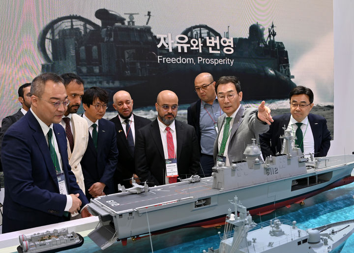 유상철 HJ중공업 대표이사는 "바다 위 선박 중 최고 수준이라 할 수 있는 평균 40노트(시속 약 74㎞)의 속력을 내며, 해상은 물론 저수심이나 갯벌 등 절벽을 제외한 전 세계 해안의 80%에 상륙할 수 있는 전천후·최첨단 함정이라는 고속상륙정의 강점이 크게 주목받으며 바이어들의 문의가 잇따르고 있다"며 "국내 대표 해양방위산업체로서 공격적인 영업활동을 통해 K-방산의 글로벌시장 확대에 일익을 담당하겠다"고 말했다. /kjo571003@sedaily.com