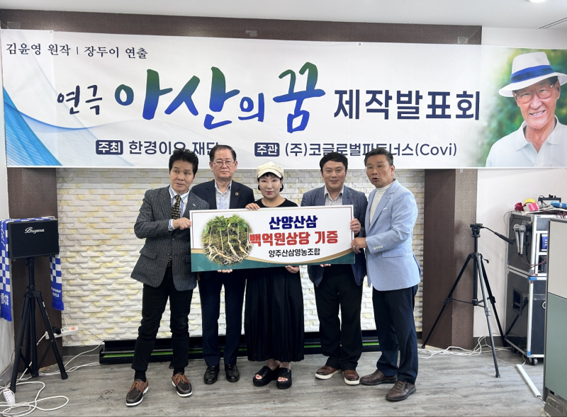 특히, 이날 박점규 양주산삼영농조합 대표는 고려산삼의 발원지인 양주 호명산에서 자란 산삼 백억 원 상당을 기증하면서 “연극 제작 및 5대그룹 창업자 정신을 널리 알리고 한국을 찾은 외국인들에게 한국의 K-기업가 정신을 전할 연수원 건립을 추진하는데 보탬이 되기를 희망한다”고 비젼을 밝혔다.