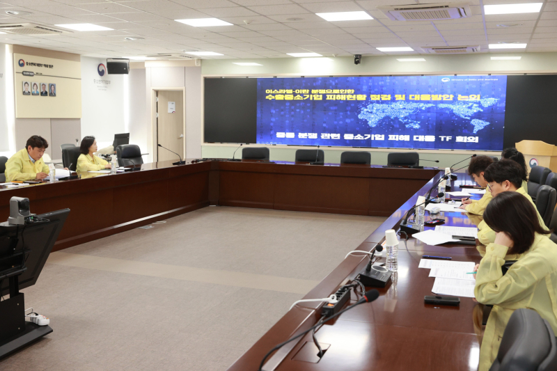 이번 TF 회의는 중소기업의 수출입 거래 차질, 물류 지연 등 다양한 우려 상황을 고려해 중소벤처기업진흥공단, 창업진흥원, 중소기업중앙회, 중소벤처기업연구원 등 중소기업 주요 지원기관들과 합동으로 개최됐으며, 중소기업의 잠재적 피해 요소를 점검하고, 분쟁 시나리오별 대응 방안을 논의했다.