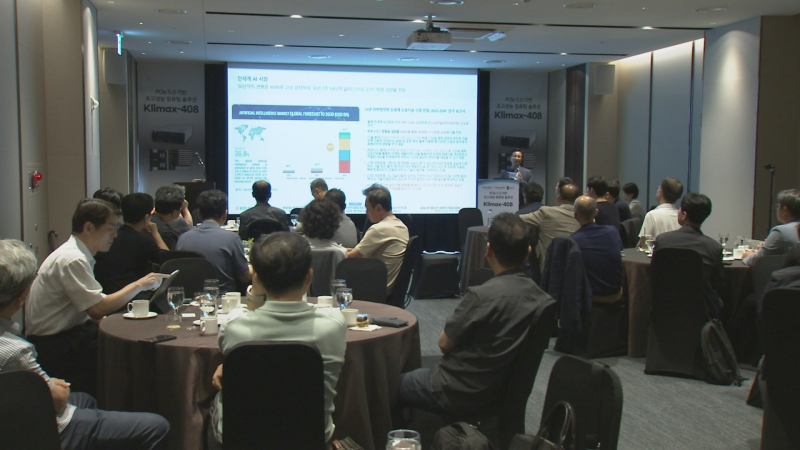 코코링크는 서울 양재 엘타워에서 AI 연산에 최적화된 신제품 클라이맥스-408(Klimax-408)을 선보였습니다. 이 제품은 다양한 연산장치를 장착할 수 있는 것이 특징입니다.