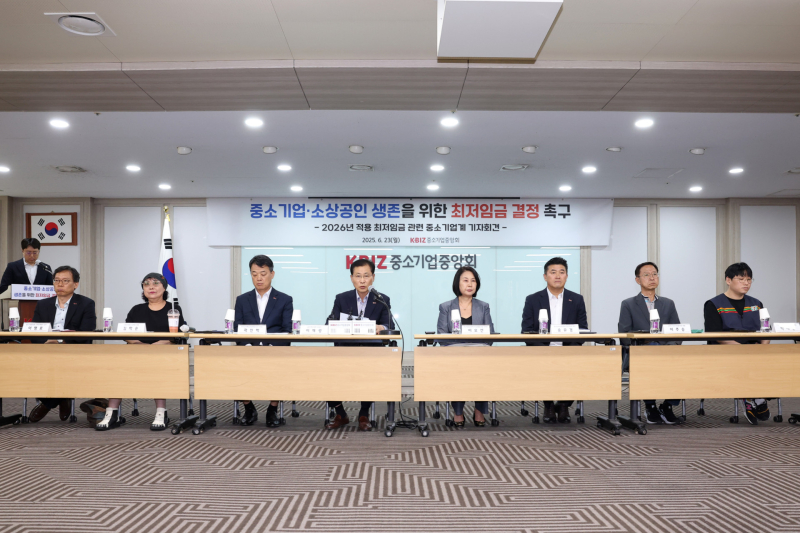 이날 기자회견에는 이재광 중기중앙회 노동인력위원회 위원장과 최저임금위원회 사용자위원인 이오선 부산청정표면처리사업협동조합 이사장, 송유경 한국수퍼마켓협동조합연합회 회장을 비롯해 중소기업·소상공인 업종별 대표들이 참석했다.