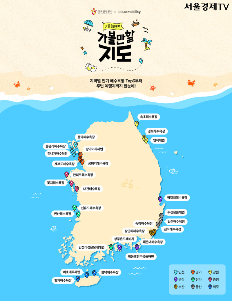 - 한국관광공사 X 카카오모빌리티, 카카오내비 데이터 기반 인기 해수욕장․해변 27곳 소개