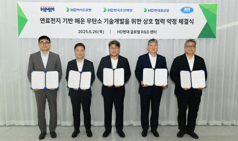 이날 협약식에는 오승환 HD하이드로젠 상무와 정재준 HD현대중공업 전무, 박상민 HD한국조선해양 상무, 김민강 HMM 상무, 이영석 한국선급 부사장 등이 참석했다.