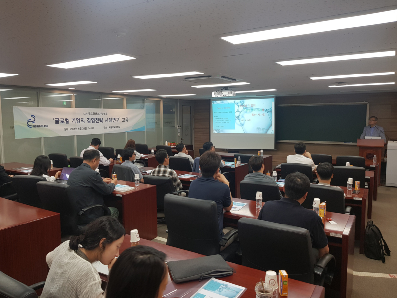 [서울경제TV=정창신기자] 월드클래스기업협회(월클협회)는 26일 서울교육대학교에서 회원사 임직원을 대상으로 ‘글로벌 기업 경영전략 사례 교육’을 진행했다고 밝혔다.