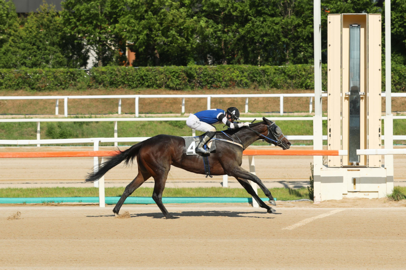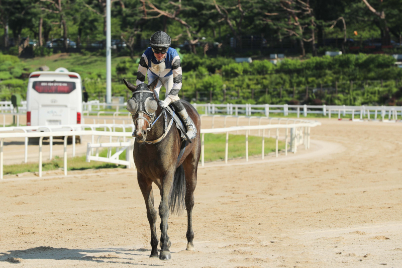 탄력은 점점 살아났고, 여유롭게 격차를 벌려 2위와 4마신 차로 가장 먼저 결승선을 통과했다. 경주 기록은 2분 9초 7. 2위와 3위는 각각 ’만대로‘와 이스트웨스트’가 차지했다.