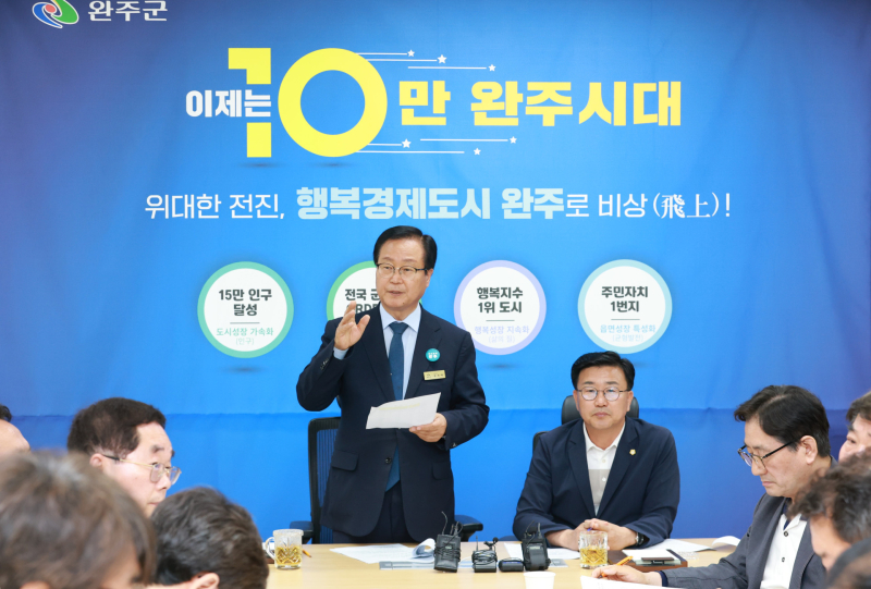 유 군수는 “신규 주거단지 조성과 기업 유치, 육아·교육 인프라 확충 등을 통해 10만 완주시대를 열었다”며 “이 기세를 몰아 전북 4대 도시로 도약하고, 시 승격을 적극 추진하겠다”고 밝혔다.