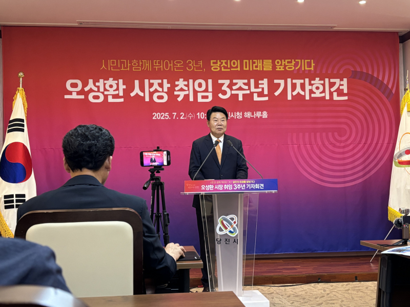 취임 3주년을 맞은 오성환 당진시장이 기자회견을 열고, 지난 3년간의 시정 성과와 향후 비전을 밝혔습니다.