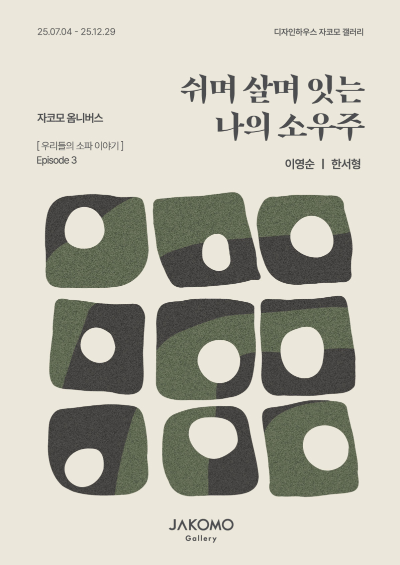 이영순 도예가는 쉼의 시간을 담은 나의 작은 공간이라는 주제로 도자 작품을 제작했다. 자코모 소파를 모티브로 ‘말랑한 감싸임’, ‘기억의 쉼’, ‘하나의 나’, 라는 세라믹 오브제 작품을 전시 했다. 해당 작품의 모티브가 된 휴튼 젠위브 4인 기능성 젠위브 패브릭 소파는 갤러리 전시 공간에서도 함께 만나볼 수 있다.