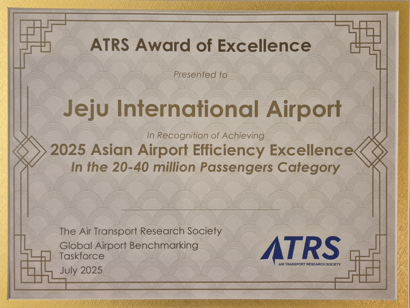 세계항공교통학회는 항공교통 분야에서 가장 권위 있는 국제학술단체이다. 매년 세계 200여 개 공항의 운송량, 항공수익, 운영비용 등 주요 지표를 평가해 우수공항을 권역별(아시아, 유럽, 북미)로 선정한다. 제주국제공항은 연간 여객 2000만명 이상 중‧대형공항 부문에서 2017년부터 2025년까지 9년 연속 아시아 지역 우수공항으로 선정됐다. 특히 팝업스토어 운영, 지역 특산품 판매시설 유치 등 여객 중심의 혁신적인 운영 전략으로 수익성을 높이고 흑자 전환을 달성한 점이 높은 평가를 받았다.