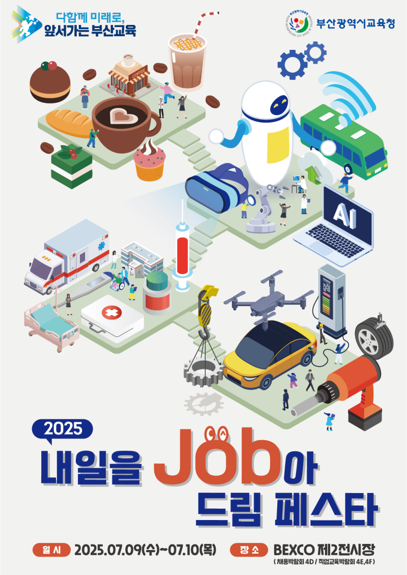 부산시교육청은 오는 9일부터 이틀간 벡스코에서 직업교육 활성화를 위해 '내일을 Job아 드림 페스타' 2025학년도 부산 직업교육 및 채용박람회를 개최한다고 8일 밝혔다.