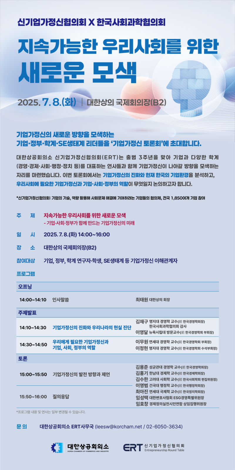 김수한 고려대 사회학 교수는 “신기업가정신의 핵심인 신뢰, 협력, 생태계 기반 혁신이 자리잡기 위해서는 문화와 제도의 전면적인 변화가 필요하다”며 “사회적 자본으로서의 교육방식 변화, 공동체 차원의 창업 지원, 사회적 인정과 존중 문화를 통한 기업가정신의 지속”을 제안했다.