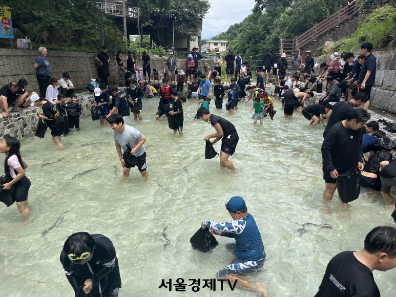 개장일에 맞춰 민물장어 잡기 체험 행사...600마리 장어 풀어