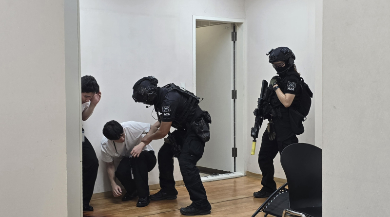 훈련은 송도컨벤시아 전시장과 주차장 일대에서 드론을 활용한 화학테러, 인질 납치, 폭발물 의심물체 발견 등 APEC 연계 회의 기간 중 발생할 수 있는 다양한 테러 상황을 가정해 진행됐다고 전했다./hyejunkim42@sedaily.com