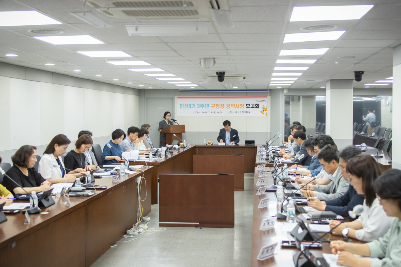 구에 따르면, 지난 9일「민선8기 3주년 공약사항 보고회」를 열어 공약 추진 현황을 종합 점검하고, 남은 1년간 사업 마무리 실행 계획을 구체화했다고 밝혔습니다.