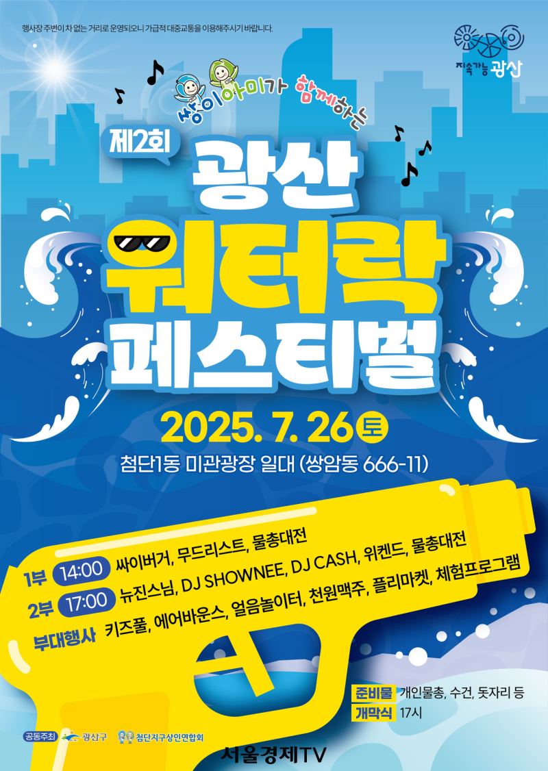 [서울경제TV 광주⋅전남=나윤상 기자] 광주 광산구에서 도심형 여름 축제가 개최돼 여름의 무더위를 시원한 물줄기로 날려버릴 것으로 기대된다.