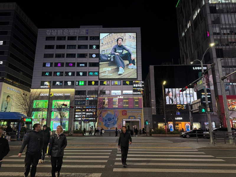 강남대로는 하루 12만명이 방문하는 국내 최대 상권 밀집지역이다. G-center는 특히 올리브영 강남타운과 미니소 강남 매장이 위치한 건물 외벽에 설치돼 강남대로를 오가는 모든 유동인구의 시선을 자연스럽게 집중시킨다.