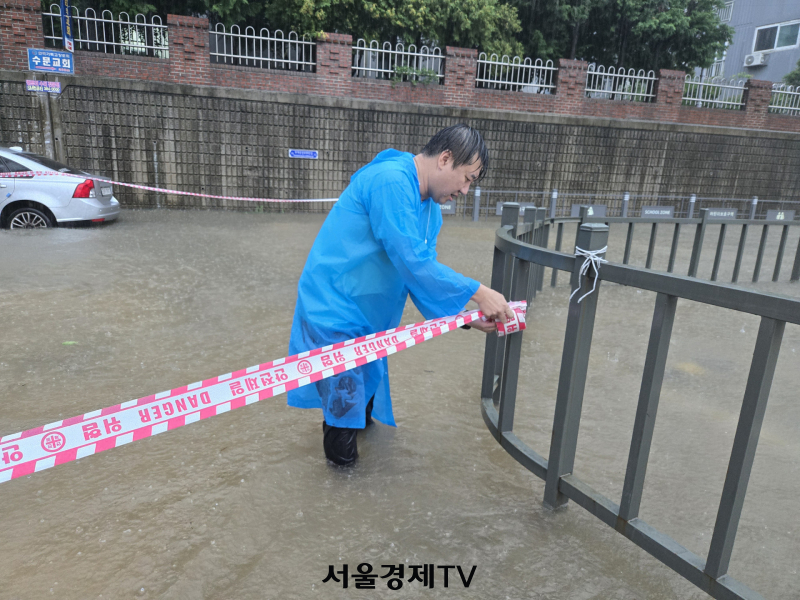 폭우 중에도 안형주 서구의원(금호1·2동)은 현장에 출동해 반사조끼를 입고 직접 배수구를 손으로 뚫었다. A씨는 “물이 다시 차기 전에 물 빠지도록 직접 손을 넣어 막힌 걸 해결했다. 물이 바로 빠졌다”며 그 모습을 전했다.