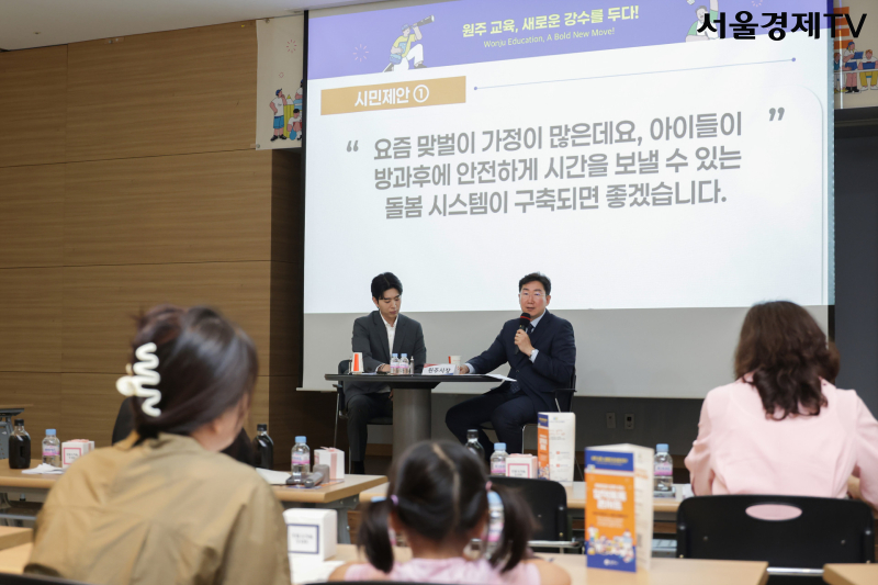 가장 큰 공감을 얻은 제안은 맞벌이 가정을 위한 방과후 돌봄 시스템 구축에 대한 의견이었다. 이에 대해 원강수 시장은 교육발전특구 사업 일환으로 경동대학교와 연계한 기업도시 ‘더자람 늘봄센터’를 소개해 직장인 학부모들로부터 큰 호응을 얻었다. 이 외에도 초등학생 대상 다양한 분야 경험 기회 제공, 의료기기 산업 분야 진로체험 프로그램 운영, 상시 소통이 가능한 교육 협의체 구성, 수도권에 가지 않아도 되는 교육 환경 조성 등 원주만의 특성을 살린 교육정책에 대한 제안이 이어졌다.