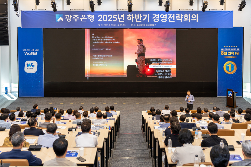 광주은행이 지난 25일 정읍 아우름캠퍼스에서 2025년 하반기 경영전략회의를 개최하고 상반기 성과 점검과 하반기 경영 방향 등을 논의했다.