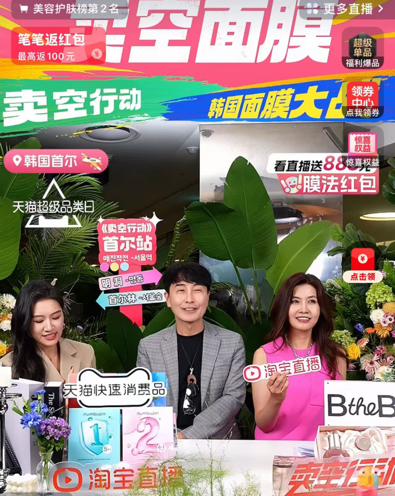 이번 행사는 마스크팩을 비롯해 100여 종의 K-뷰티 스킨케어 제품을 알리는 대규모 라이브 커머스 방송으로, 총 1억 위안(약 190억 원)의 매출, 누적 시청자 2억 명, 중국 웨이보 실시간 검색 노출 6700만 회 등의 성과를 달성했다.