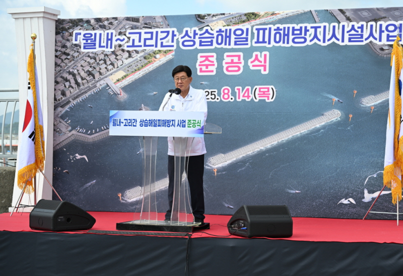 지난 14일 월내 매립지 내 광장에서 정종복 기장군수, 기장군의원, 부산시의원, 고리원전 본부장, 지역주민 등 300여 명이 참석한 가운데 월내~고리간 상습해일 피해방지시설사업 준공식이 개최됐다.