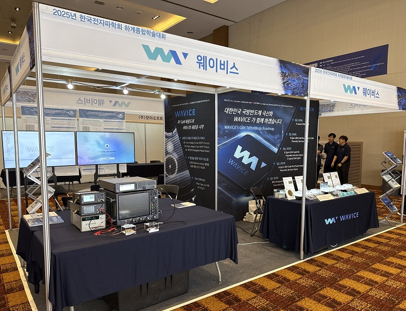 웨이비스는 이번 학술대회에서 홍보부스를 마련하고 산업계 및 연구기관 주요 참석자들을 대상으로 최근 국내 최초로 개시한 0.2㎛(마이크로미터) 공정 기반 X-밴드 질화갈륨(GaN) 반도체 고주파 집적회로(MMIC) 파운드리 서비스를 소개했다.