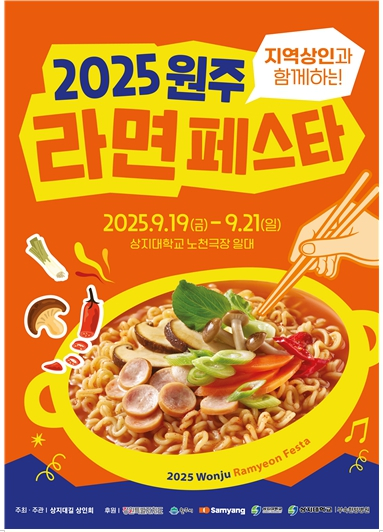 21일 원주시에 따르면 라면페스타는 국민 간식이자 세계인이 사랑하는 라면을 주제로, 원주만의 독창적인 먹거리 문화를 알리고 지역 상권을 활성화하기 위해 마련됐다. 특히 원주는 우리나라 최초의 라면인 ‘삼양라면’의 고장으로, 라면의 역사와 전통을 간직한 도시인 만큼 이번 개최가 더욱 뜻깊다.