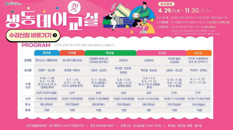 대구생활문화센터, ‘2025 생동데이교실’ 하반기 수강생 모집