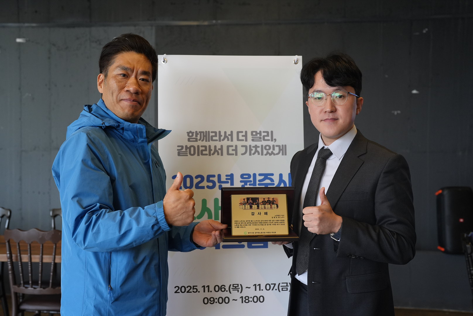 - 원주시청 공무원노동조합, 자문 공인노무사인 강영조·김형찬에게 감사패 전달