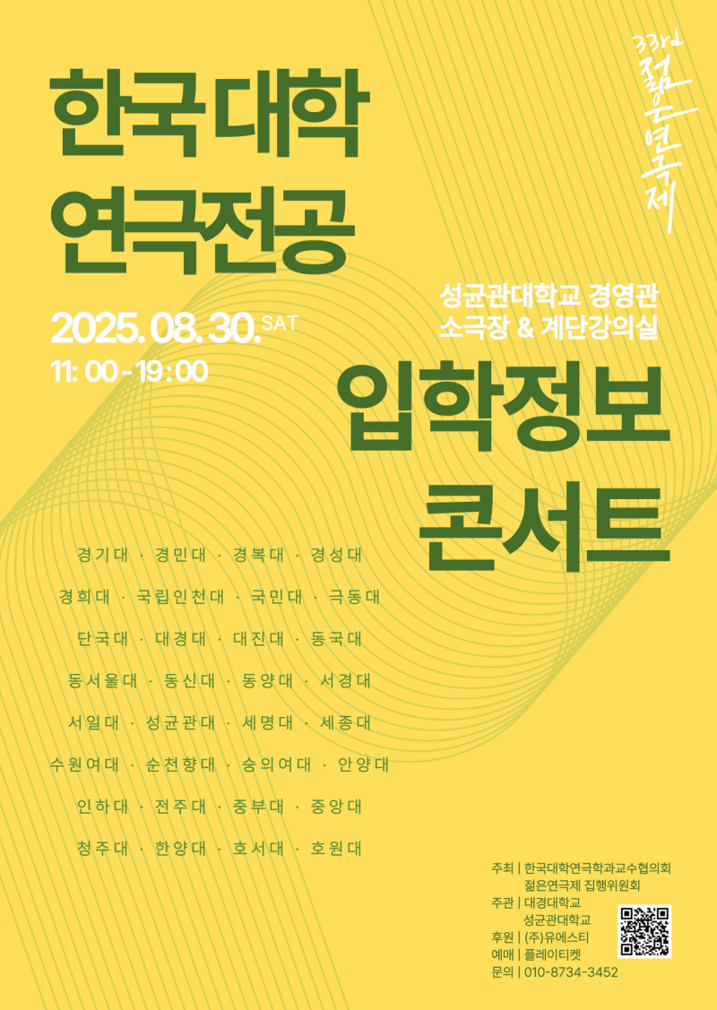 연기, 연극, 극작, 연출 궁금한거 알려드려요. 국내 최대 연극전공 입학정보 콘서트 개최