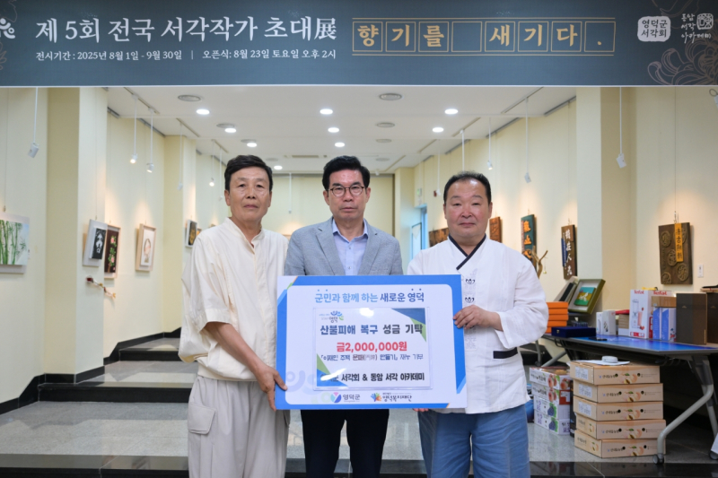 먼저 지난 23일, 영덕군 서각회와 동암 서각 아카데미는 산불 피해 복구를 위해 성금 200만 원을 기탁했다.
