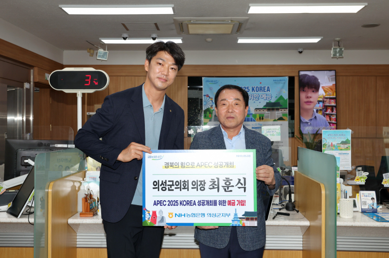 [서울경제TV 의성=김아연 기자] 의성군의회(의장 최훈식)는 26일 농협을 통해 「APEC 2025 KOREA 성공개최를 위한 예금」에 가입하며, 2025년 아시아·태평양경제협력체(APEC) 정상회의의 성공적인 개최를 기원했다.