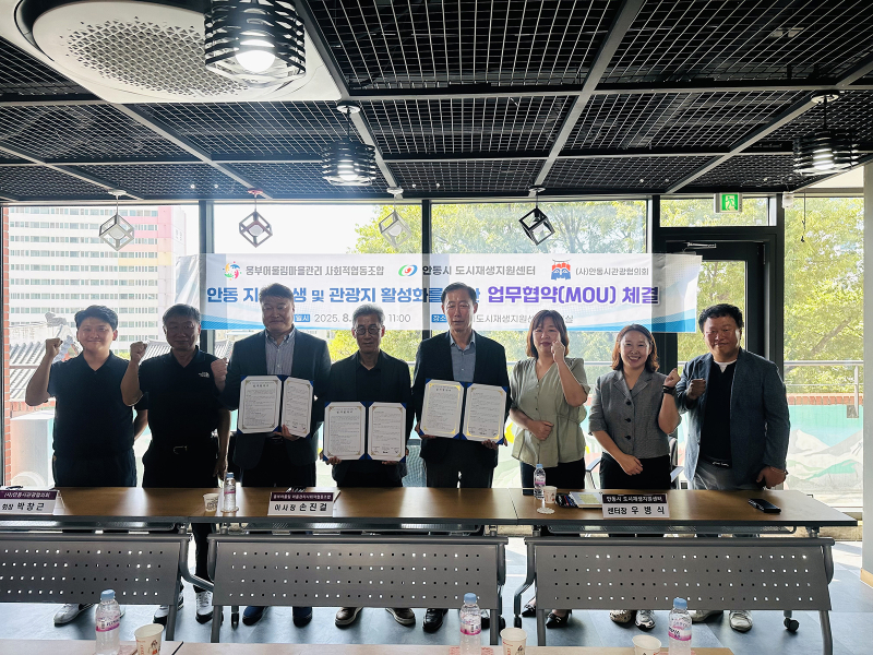 이번 협약은 원도심이 지닌 역사와 문화 자원, 도시재생 자원을 연계해 차별화된 관광상품을 발굴·개발하고, 지속 가능한 지역공동체 조성과 관광 활성화를 도모하기 위해 마련됐다. 협약식에는 박창근 안동시관광협의회 회장, 손진걸 웅부어울림마을관리사회적협동조합 이사장, 우병식 도시재생지원센터장이 참석했다.