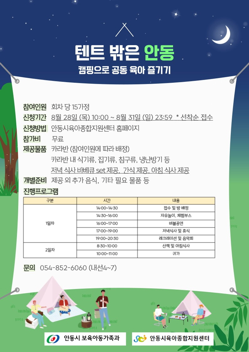 안동시, ‘텐트 밖은 안동’ 캠핑 프로그램 참가자 모집