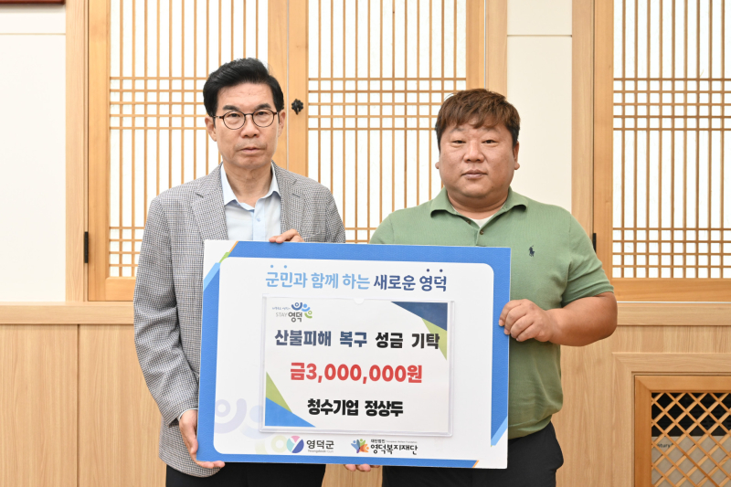 김광열 영덕군수는 “이번 기탁은 지역사회의 따뜻한 연대와 협력이 무엇보다 중요하다는 것을 다시 한번 일깨워 준다”며, “기탁하신 성금은 피해 복구와 주민들의 빠른 일상 복귀에 큰 도움이 될 것”이라고 고마움을 표했다.
