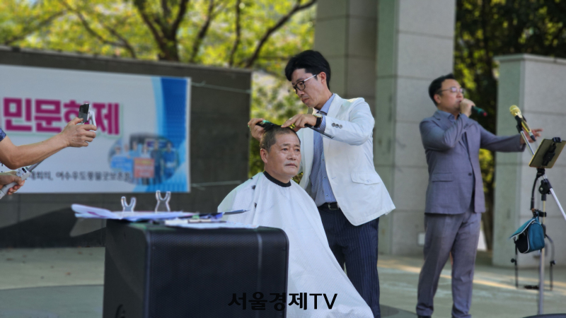 여서동 미관공원서 공연·삭발식 이어져…200여 명 시민 참여