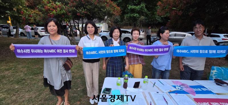 특히 더불어민주당 여수시 갑·을 지역위원회는 무더위에 지친 시민들을 위해 생수와 음료를 준비해 배부하며 봉사에 나섰다. 두 지역위원회는 공동 성명을 통해 “여수MBC는 지역 정체성과 공동체의 상징으로, 시민을 배제한 일방적 이전은 결코 수용할 수 없다”고 밝혔다.