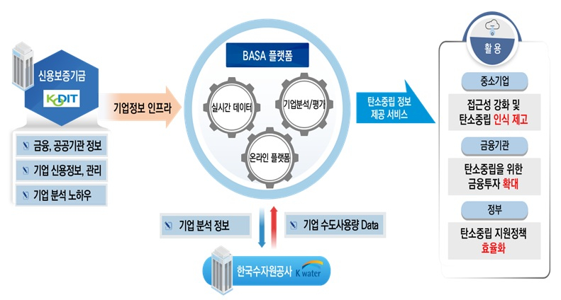 신보는 수자원공사의 상수도 이용 데이터를 기업 데이터와 결합해 탄소배출량 및 감축량, 탄소저감 노력도 등 탄소중립 정보를 정밀하게 산정하고, 빅데이터 플랫폼 BASA를 통해 민간·공공에 개방해 탄소중립 데이터 접근성을 높일 계획이다.