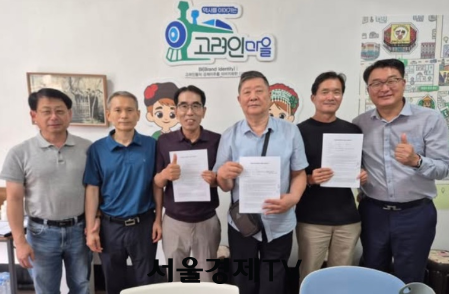 19일 고려인마을에 따르면 지난 18일 광주 광산구 월곡동 고려인마을 주민관광청에서 문 화백이 삽화 작업에 참여하는 동화 출판 계약 조인식이 열렸다. 이날 조인식에는 동화작가 홍종의, 출판사 키큰스토리 이학수 대표, 백승현 대동문화재단 전문위원, 최창인 고려인마을주민관광청 자문위원, 김병학 월곡 고려인문화관장이 함께 했다.