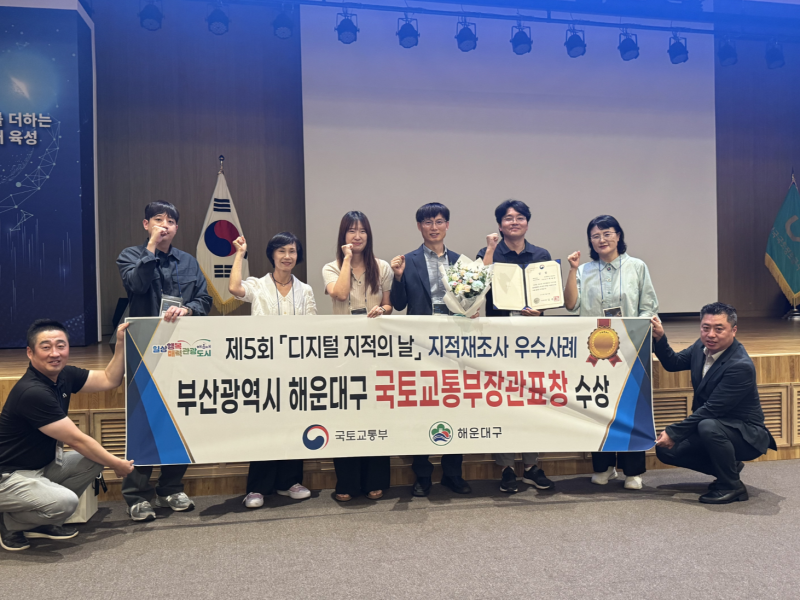 [서울경제TV 부산=김정옥 기자] 부산 해운대구는 지난 16일 충남 공주시 LX국토정보교육원에서 열린 '제5회 디지털 지적의 날 기념행사'에서 지적재조사 우수사례 부문 최우수상을 수상해 국토교통부 장관 표창을 받았다고 19일 밝혔다.