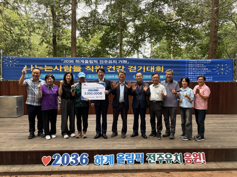 이번 걷기대회는 나누는사람들 산하 9개 기관 임직원 100여 명이 함께해 건강한 조직문화를 다지고 법인의 소속감을 높이기 위해 마련됐다. 참가자들은 걷기운동과 함께 건지산 진입로에서 줍깅 활동을 펼치며 환경보호에 앞장섰고, 미니올림픽으로 화합의 시간을 가졌다. 또 2036 하계올림픽 전주 유치를 기원하는 퍼포먼스를 통해 지역사회의 염원을 담았다.