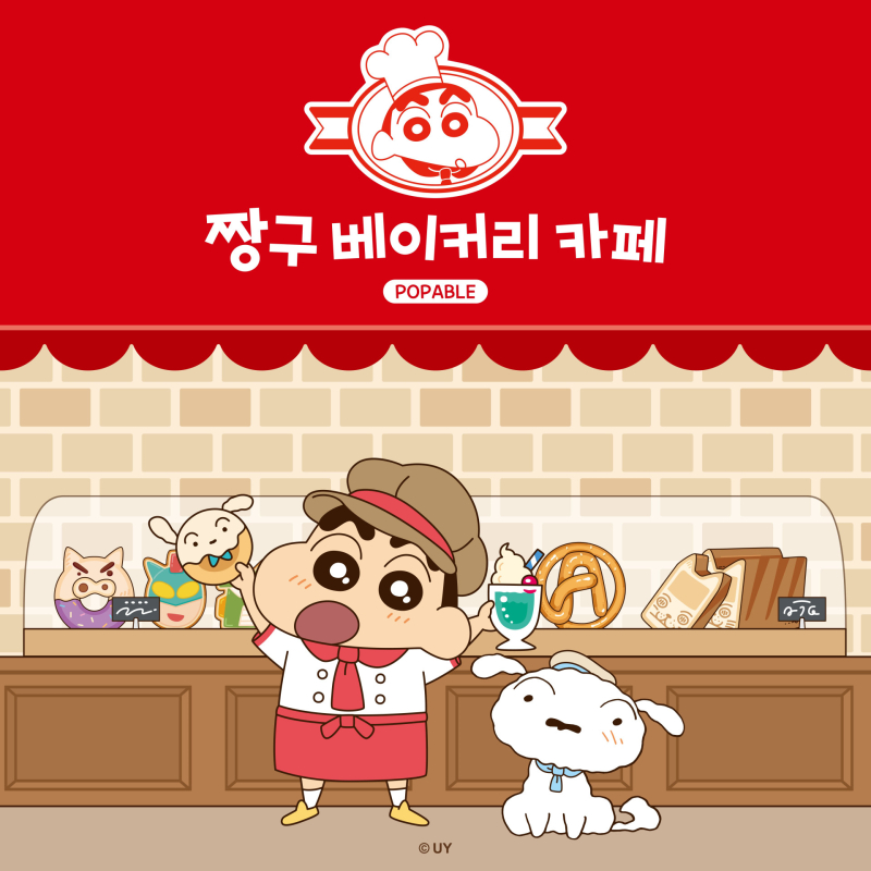 약 50석 규모의 카페에는 △짱구의 엉덩이춤을 모티브로 한 ‘짱구 크림 엉푸치노’ △부리부리 대마왕 얼굴이 새겨진 ‘부리부리 아인슈페너’ △짱구·부리부리 대마왕·흰둥이·액션가면 모양의 캐릭터 쿠키세트 등 마련된다.